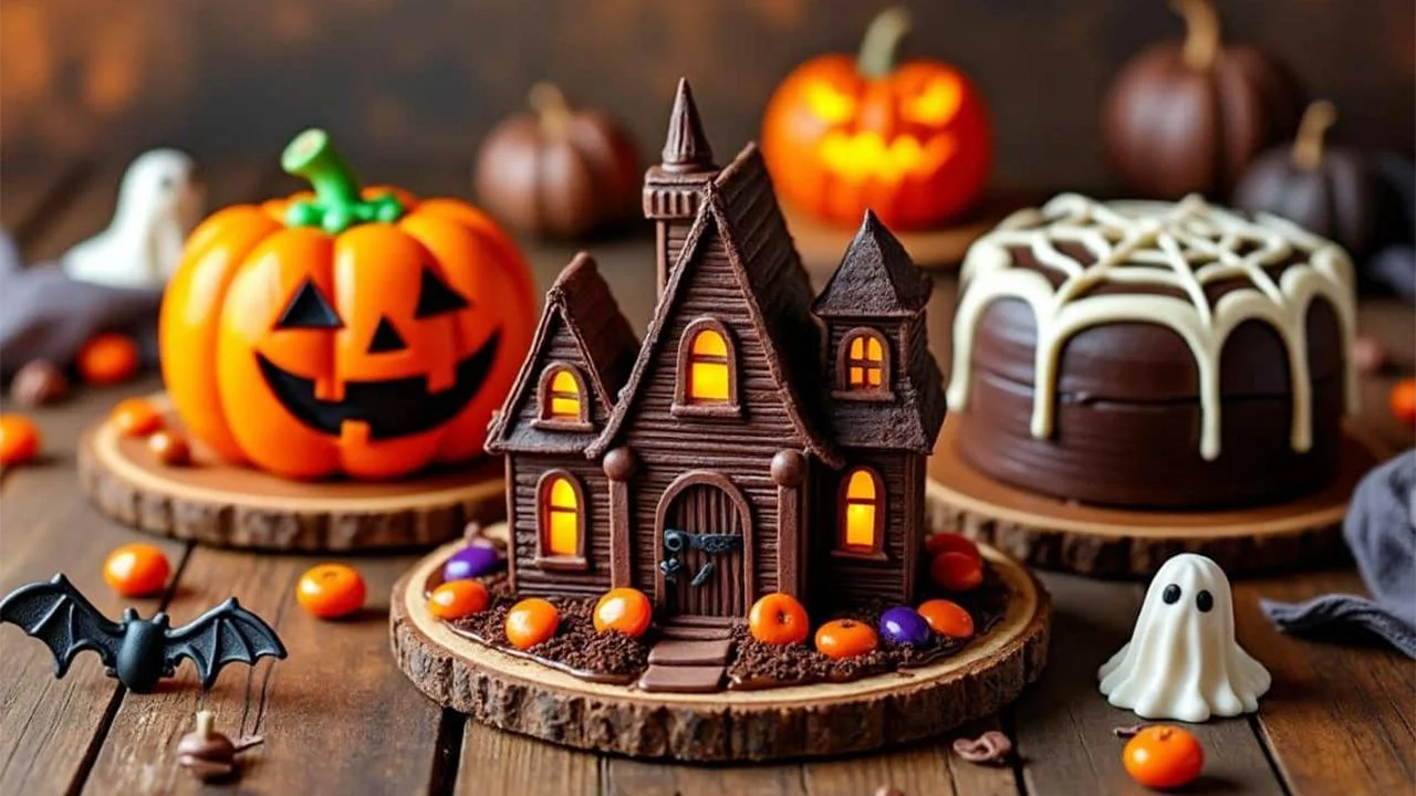 The spiderweb chocolate cake combines elegance and spookiness in one bite. Cover your chocolate cake with dark ganache, then use white icing to draw intricate spiderweb patterns on top. Add a few candy spiders for extra drama. This design is surprisingly easy and always a crowd-pleaser.